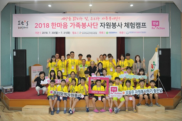 [충청뉴스큐]대전광역시는 지난 30일부터 31일까지 동구청소년자연수련원에서 부모와 자녀가 함께 참여하는 ‘2018년 한마음가족봉사단 자원봉사 체험캠프’를 개최했다.