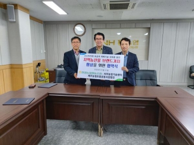[충청뉴스큐] 제주특별자치도농업기술원 서부농업기술센터는 21일 오후 제주시 한경면 소재 한경농협에서 한경농업협동조합, 제주농협조합공동사업법인과 서부지역 새소득작목 기술 보급 및 생산·유통에 대한 업무협약을 체결했다고 밝혔다.