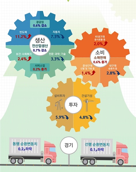 [충청뉴스큐] 통계청이 31일 발표한 '6월 산업활동동향'을 보면 지난달 전산업생산지수는 전월보다 0.7% 감소했다.