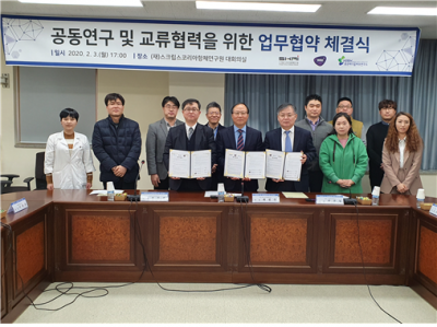 [충청뉴스큐] 스크립스코리아항체연구원, 서울대학교 시스템면역의학연구소, 홍천메디칼허브연구소는 지난 3일 스크립스코리아항체연구원에서 바이오 분야 연구개발 경쟁력 강화를 위해 공동연구 및 상호 교류협력 업무협약을 체결했다.
