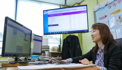 [충청뉴스큐] 초등학교 1~3학년을 제외한 인천 지역 전 학년이 온라인 개학을 실시한 16일 오늘 행복배움학교인 인천명현초등학교에서 교사들이 온라인 수업을 진행하고 있다.