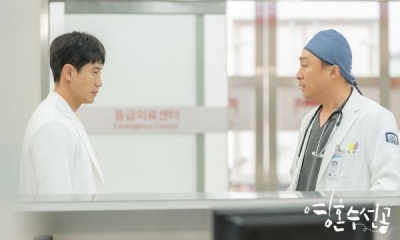 공개된 사진에는 은강병원 정신과 전문의 이시준이 수술복 차림인 응급의학과 전문의와 마주한 모습이 담겼다.