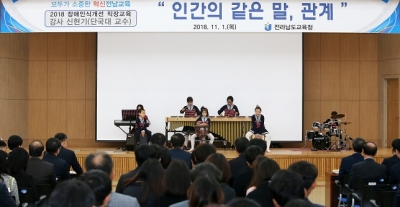 [충청뉴스큐] 전남교육청이 1일 오전 열린 11월 월례조회에서 전체 직원 400여 명을 대상으로 ‘인간의 같은 말, 관계’라는 주제로 장애인식 개선 교육을 실시했다.