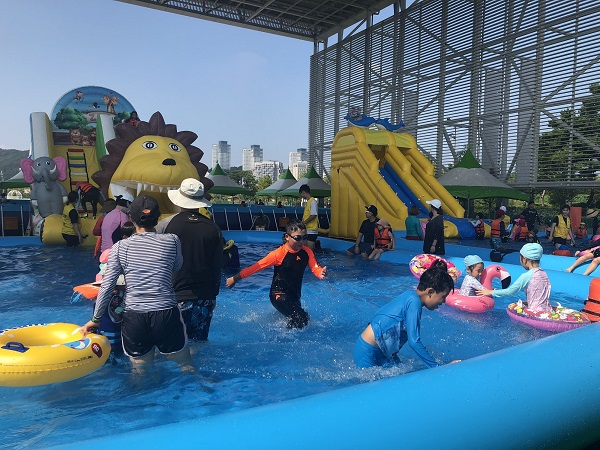 한편, 지난 달 27일부터 오는 12일까지 운영되는 어린이 물놀이장은 유아용 에어풀장 2개와 아동용 조립식 풀장 1개를 설치해 운영 중이며, 오전 10시부터 오후 5시까지 무료로 이용할 수 있어 여름방학을 맞은 아이들에게 인기 만점이다.