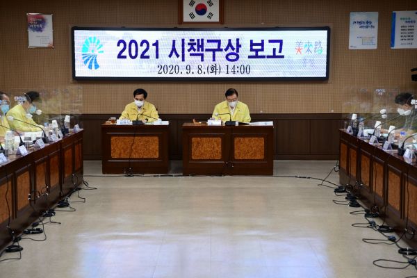 주요시책으로 한국판 뉴딜 및 포스트 코로나 대응 광천 문화복합센터 건립 친환경 에너지 자립마을 확대 지역혁신 플랫폼 구축 농촌365생활권 구축 빅데이터 플랫폼 구축 원촌마을 도시재생 뉴딜사업 농특산물 드라이브스루 상설 직거래 장터 운영 스마트공장 보급 확산 자연재해저감 종합계획 수립 열린 관광지 개발 등이 보고됐다.
