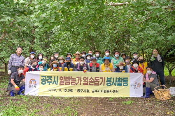 공주시는 지난 10일 김정섭 시장을 비롯한 시청 직원과 사회단체 회원 등이 참여한 가운데 정안면 내촌리 알밤 농가를 방문해 일손 돕기를 실시했다고 밝혔다.