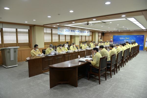 [충청뉴스큐] 부여군은 17일 군청 서동브리핑실 및 재난종합상황실에서 박정현 군수를 비롯한 전 실과소장과 읍·면장 등이 참석한 가운데 2021년 시책구상 보고회를 개최했다.