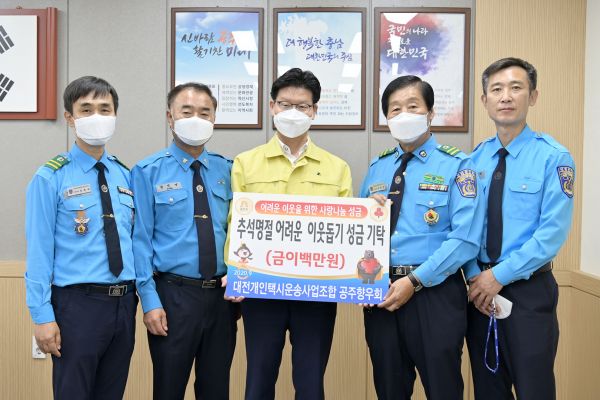 [충청뉴스큐] 공주시는 지난 17일 대전개인택시 운송사업조합 공주향우회 박병문 회장이 추석명절 어려운 이웃돕기 성금 200만원을 공주시에 기탁했다고 밝혔다.