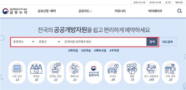 [충청뉴스큐] 증평군이 군민 누구나 관내 공공개방자원을 이용할 수 있도록 공유서비스‘공유누리’를 통해 정보를 제공하고 있다.