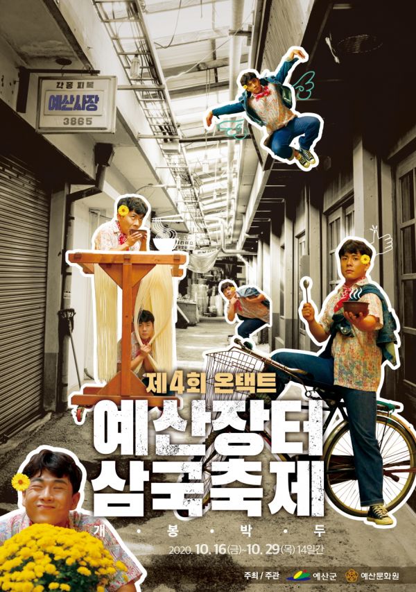 제4회 예산장터 삼국축제는 그동안 진행돼 온 축제의 명맥을 잇고 코로나19 확산방지를 위해 온라인과 비대면 방식을 결합한 '온택트 방식'으로 오는 10월 16일부터 29일까지 14일간의 일정으로 진행될 예정이다.