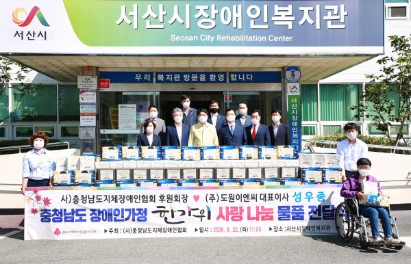 [충청뉴스큐] 서산시가 22일 서산시 장애인복지관에서 추석 맞이 장애인가구 후원물품 전달식을 개최했다.