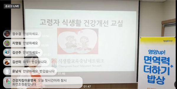 지난 21일 영양꾸러미를 재료로 실시한 ‘면역력 더하기 밥상 차리기 교실’ 첫 번째 영양교육은 재료손질부터 완성품이 나올 때까지 생방송으로 진행됐다.