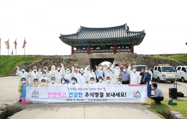 [충청뉴스큐] 맹정호 서산시장이 29일 양승조 충남도지사와 추석을 맞아 서산해미읍성과 서산해미읍성 역사캠핑장을 들러 방역상황을 점검하고 함께 방역활동에 나섰다.
