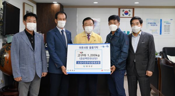 [충청뉴스큐] 홍성 도청이전주민생계조합이 직접 재배한 고구마 1200kg을 어려운 이웃을 위해 기부하며 따뜻한 정을 나눴다.