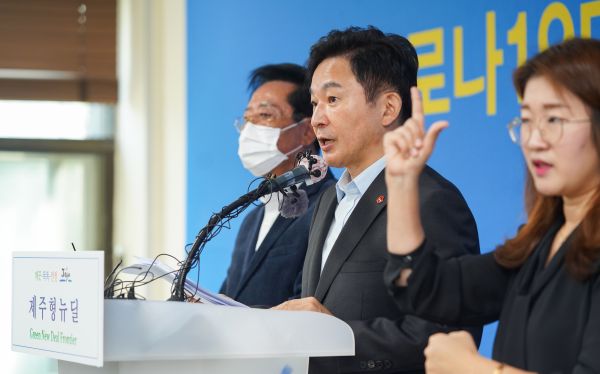 [충청뉴스큐] 제주특별자치도와 제주특별자치도의회는 12일 오전 10시 도청 기자실에서 도와 도의회 공동으로 제주미래를 위한 ‘제주형 뉴딜 종합계획’을 발표했다.