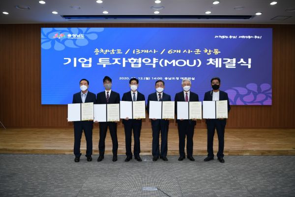 [충청뉴스큐] 예산군은 지난 12일 충남도청 대회의실에서 충남도와 6개 시·군, 13개 기업이 참여한 가운데 관내 산업단지에 투자를 결정한 4개 기업과 합동 투자협약을 체결했다.