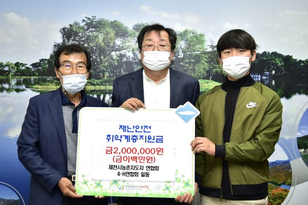 제천시 농촌지도자연합회와 4-H연합회는 지난 19일 올 여름 수해로 큰 피해를 입은 지역주민들을 위해 성금 200만원을 재난안전취약계층 지원금으로 제천시에 기탁했다.