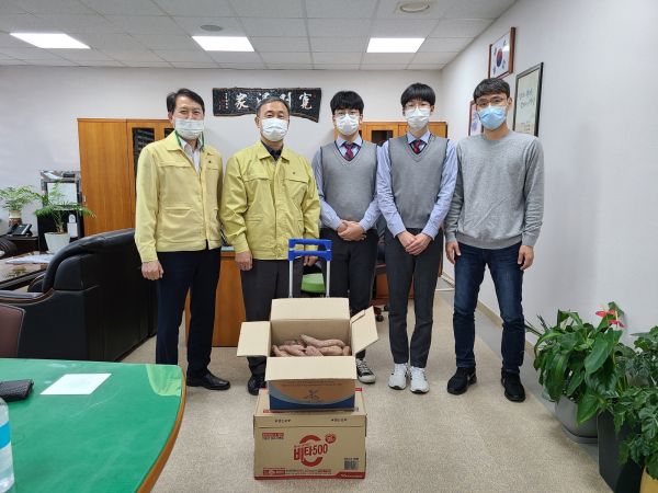 [충청뉴스큐] 부여군 보건소는 지난 16일 소장실에서 임천중학교 학생들이 학교 텃밭에서 정성스레 가꾸고 수확한 고구마를 전달받았다.