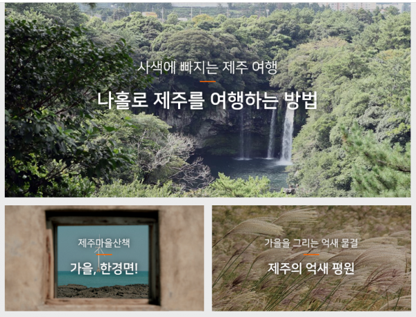 제주도는 특히 ‘당신이 몰랐던 가을여행’컨셉으로 오름과 억새, 귤밭, 향토음식 등 오직 제주에서만 즐길 수 있는 숨은 명소와 먹거리 등을 소개하는 279편의 콘텐츠를 제작해 지속적으로 선보인다.