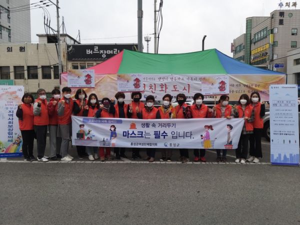 [충청뉴스큐] 홍성군 여성단체협의회, 지역사회보장협의체와 새로일하기센터는 지난 21일 홍성읍내 일원에서 ‘마스크 생활화’캠페인을 벌였다.