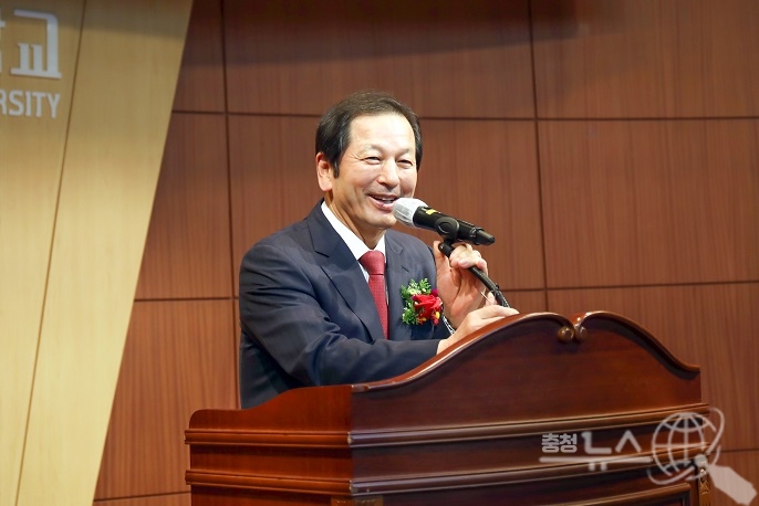 송용천 이사장은 격려사에서 “오늘의 선문대가 있기까지 아낌없는 정성과 노력을 기울여 온 황선조 총장을 비롯한 역대 총장, 교직원 여러분 그리고 전체 동문과 학생, 학부모님께 진심으로 감사한다”면서 “선문대는 개인보다는 국가와 세계를 위하는 인재를 양성하기 위해 세워졌다. 애천(愛天)·애인(愛人)·애국(愛國)의 건학이념을 중심으로 내외 양면에서 올바르게 성장하는 교육을 지속해야 한다”고 강조했다. 또한 “선학학원 법인은 선문대가 변화에 능동적으로 대처할 수 있도록 지원을 아까지 않을 것이다”고 말했다.