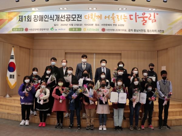 [충청뉴스큐] 서천군장애인종합복지관은 지역 내 초·중·고등학생을 대상으로 개최한 제1회 장애인식개선 공모전 ‘다함께 어울리는 다울림’의 시상식을 지난 23일 서천문예의전당 소강당에서 가졌다.