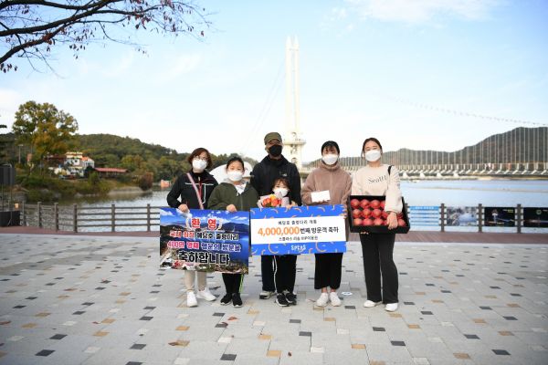 군은 400만명 째 방문객으로 행운의 주인공이 된 경남 김해시에 거주하는 조가연 씨 가족에게 축하 꽃다발과 지역 특산품을 전달했다.