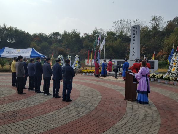 [충청뉴스큐] 부여군과 석성산성보존회은 지난 28일 석성면 탑골공원에서 조대호 부군수, 진광식 부여군의회 의장을 비롯한 지역주민 200여명이 참석한 가운데 제6회 석성산성 충혼문화제를 개최했다.