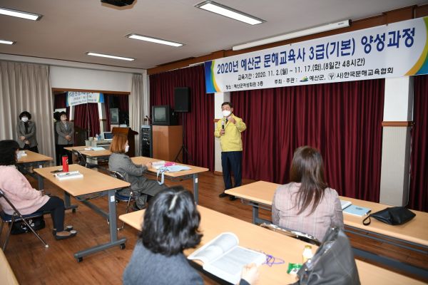 [충청뉴스큐] 예산군은 지난 2일 예산군여성회관에서 수강생 20명과 군 관계자 등이 참석한 가운데 문해교육사 3급 자격과정 개강식을 개최했다.