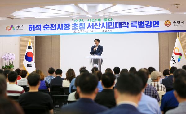 서산시민대학은‘순천, 서산에 묻다’라는 주제의 허석 순천시장의 강연을 시작으로 순천시 전·현직 공무원, 생태환경운동가, 지역활동가가 강사로 나서 총7회에 걸쳐 진행됐으며 특히 생태·환경 분야에 초점을 맞추어 단순 이론 강의가 아닌 사례중심으로 현장의 생생한 목소리를 전해줬다.