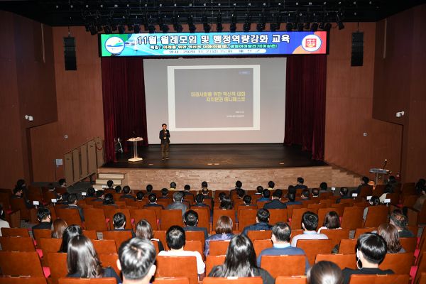 이날 교육은 코로나19 예방을 위해 모든 참여자에 대해 발열체크, 손소독 및 띄어앉기 등 방역수칙을 준수한 가운데 진행됐으며 청내 영상을 송출해 전 직원이 시청할 수 있게 했다.
