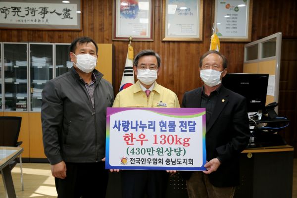 [충청뉴스큐] 서천군은 지난 4일 전국한우협회 충남도지회에서 관내 취약계층에 전해달라며 한우 130kg을 기탁했다고 밝혔다.