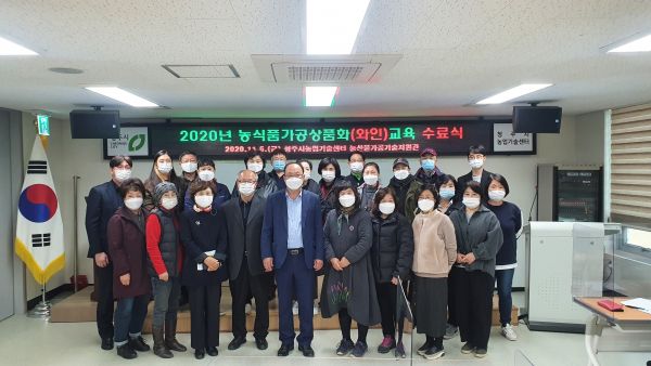 [충청뉴스큐] 청주시농업기술센터가 농산물 가공으로 농촌 융복합 산업 발달을 위해 추진하는 ‘농식품 가공상품화 교육’의 수료식을 6일 교육생 20명과 관계자 5명이 참석한 가운데 진행했다.