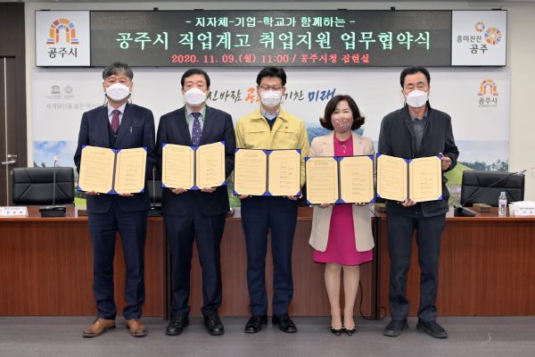 [충청뉴스큐] 공주시는 지난 9일 시청 집현실에서 민·관·학 취업지원 업무협약을 체결했다.