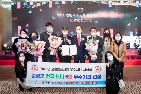 [충청뉴스큐] 증평군이 대통령직속 국가균형발전위원회가 주관한 균형발전사업 시상식에서 전국 최다인 6회 수상의 영예를 안았다.