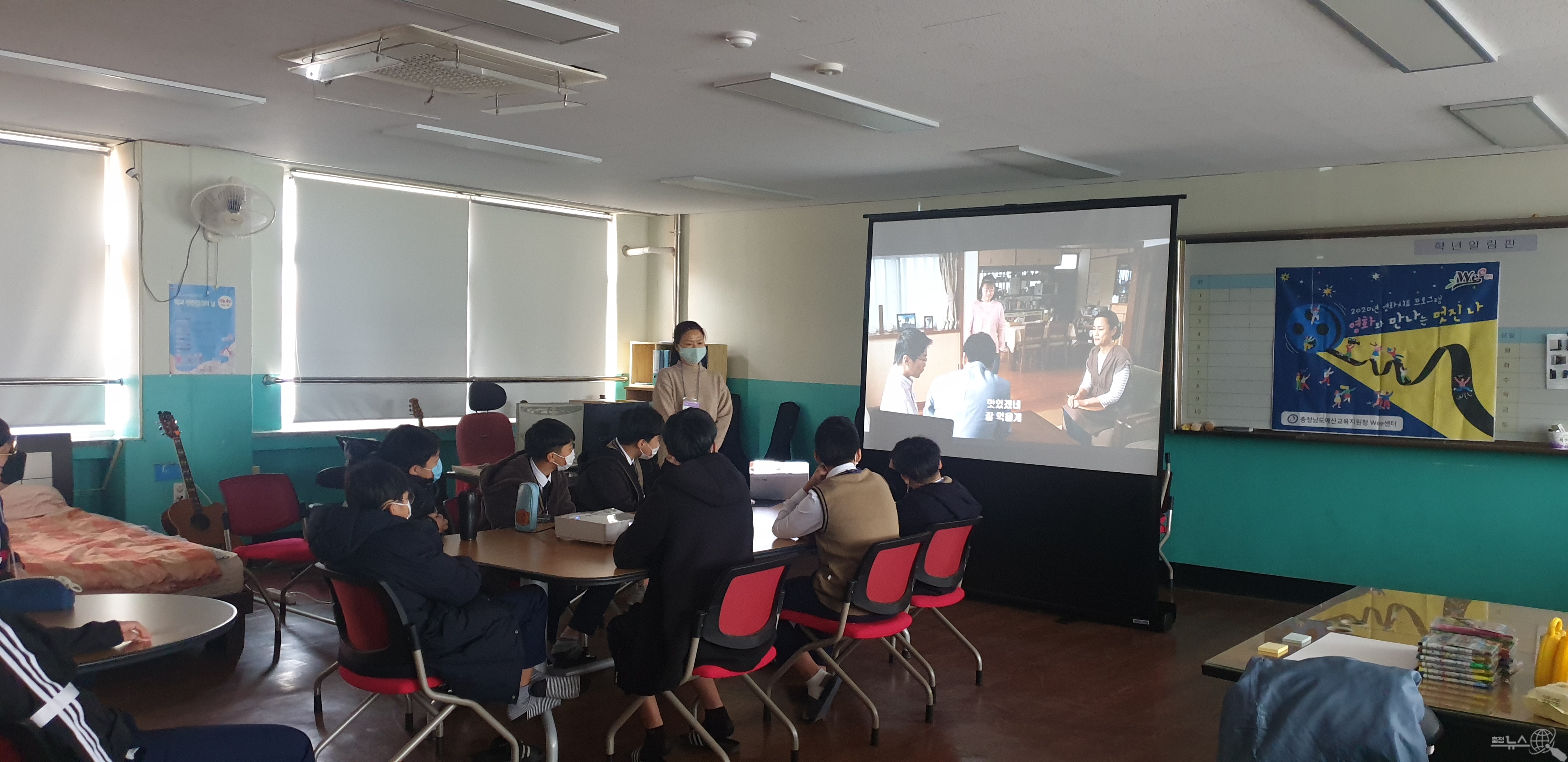 예산교육지원청 Wee센터(교육장 안성호)는 12일 예산중학교 교사연구실에서 1학년 학생 13명을 대상으로 “영화와 만나는 멋진 나” 영화치료 프로그램을 진행했다“고 밝혔다.