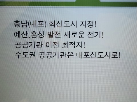 군은 지난 11월 6일부터 오는 30일까지 농협 자동화기기를 통해 '충남 혁신도시 지정 예산·홍성 발전의 새로운 전기 공공기관 이전 최적지 수도권 공공기관 내포신도시로 라는 홍보문구를 송출한다.