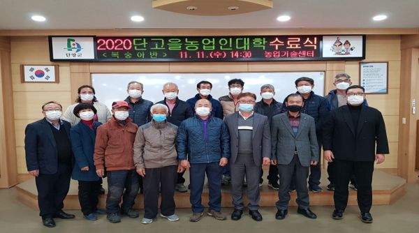 [충청뉴스큐] 단양군농업기술센터는 센터 회의실에서 ‘2020년 단고을농업인대학’의 수료식을 가졌다고 지난 16일 밝혔다.