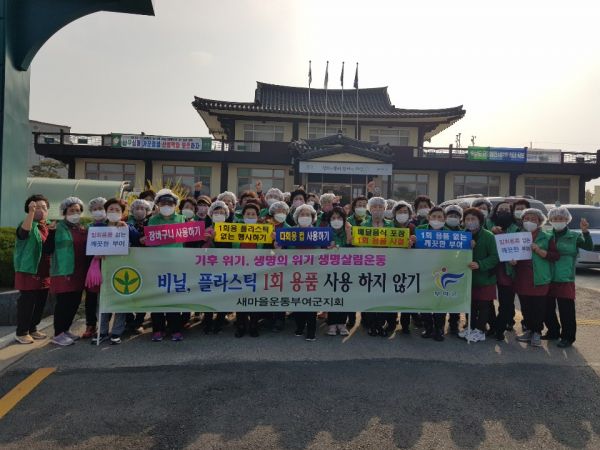 이날 행사는 부여읍새마을부녀회 회원 50명이 참여한 가운데 생활 속 에너지 절약 실천으로 겨울철 전력대란으로 인한 피해를 예방하고 범국민 에너지 절약 실천의식을 고취시키고 아울러 환경오염으로 인한 기후 위기, 생명위기를 극복해나가고자 1회용품 사용하지 않기 홍보활동을 전개했다.