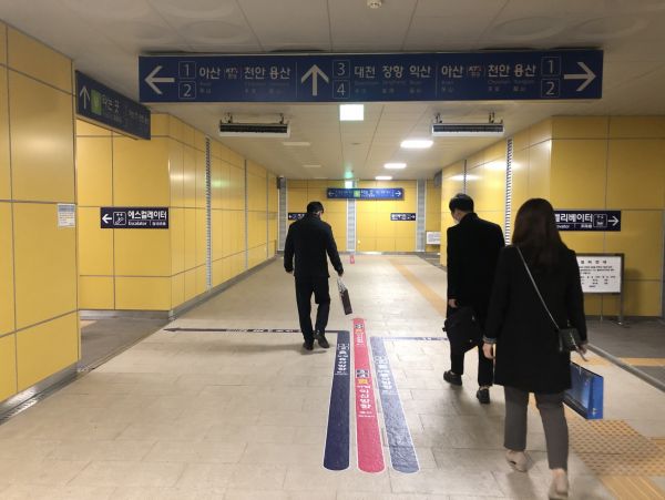 특히 군은 넘어짐 사고가 빈번히 발생되는 기차역 내에는 노약자, 장애인, 외국인 등이 안전하게 승강기를 이용하도록 출입구 바닥에 승강기 유도 동선 스티커를 설치했다.
