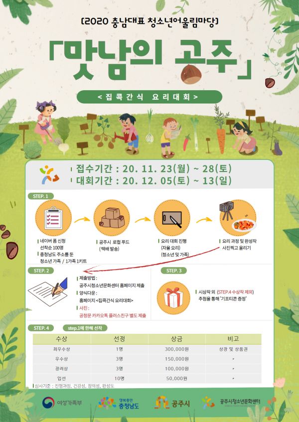[충청뉴스큐] 공주시는 2020 충남대표 청소년어울림마당 일환으로 집콕간식 요리대회 ‘맛남의 공주’를 개최한다고 26일 밝혔다.