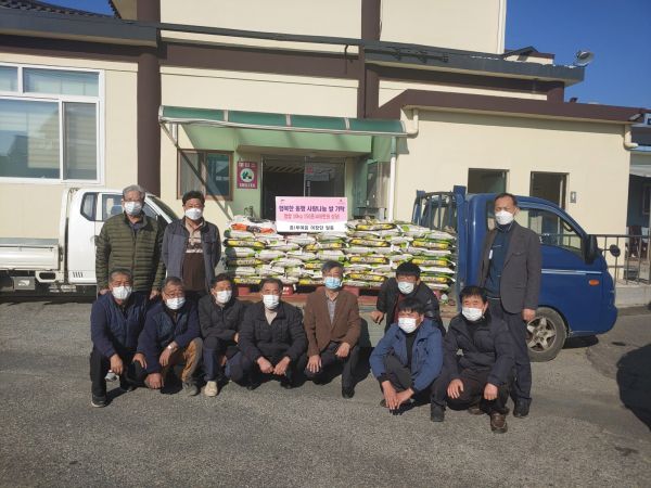 [충청뉴스큐] 부여군 부여읍 이장단이 지난 25일 복지 사각지대 해소 및 마을 어려운 이웃들을 위해 사랑나눔 쌀 150포를 전달하는 행사를 가졌다.
