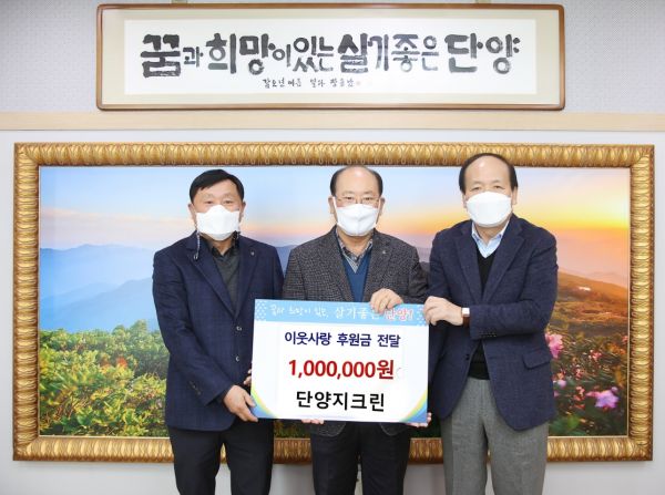 [충청뉴스큐] 충북 단양군은 단양지크린에서 동절기 취약계층 후원금으로 100만원을 전달했다고 지난 10일 밝혔다.