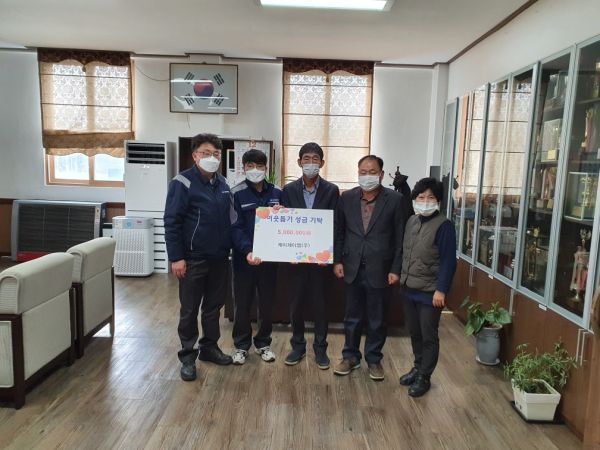 당진시 송산면에 소재한 케이제이엠주식회사는 10일 임직원들이 십시일반 모은 이웃돕기 성금 500만원을 당진시 송산면행정복지센터에 기탁해 훈훈한 감동을 주고 있다.