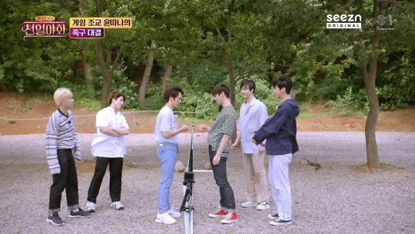 점심을 먹은 멤버들은 ‘게임계의 악마 조교’ 윤산하의 제안으로 족구 게임을 진행한다.