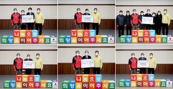 또한, ‘주식회가 경동’이 500만원, ‘태안선한이웃 소망감리교회’가 300만원, ‘태안군산림조합’이 100만원을 기탁하며 지역 사랑의 마음을 전했다.