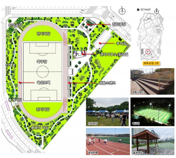 군은 체육공원 3호에 축구장 1면, 관람형스탠드, 순환형 육상트랙 5레인, 족구장 2면, 400㎡ 실외 게이트볼장을 포함한 다목적 운동장을 조성하고 있다.