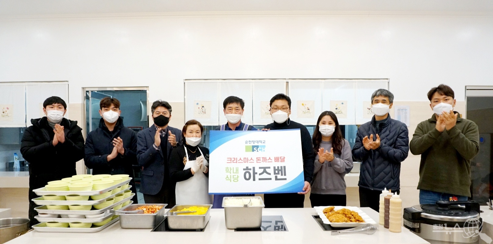 순천향대(총장 서교일)가 연말연시를 앞두고 지난 16일 오후 6시, 교내에 상주하는 푸드코트 업체인 돈까스 전문점 ‘하즈벤’과 함께 사회복지법인 아동양육시설을 방문해, 이 시설에서 거주하는 아동들을 대상으로 이색 '크리스마스 돈까스’ 선물을 즉석요리해 전달하는 나눔 캠페인을 실시했다“고 밝혔다.