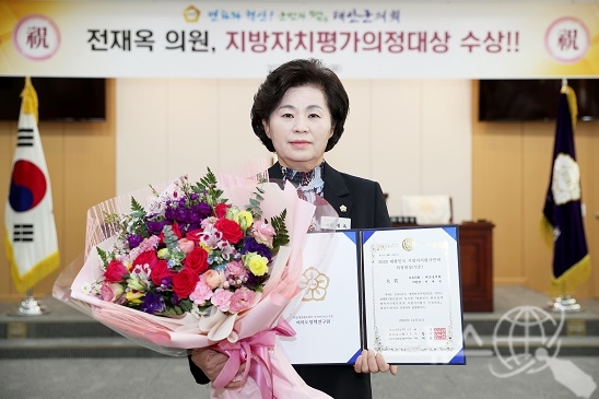 전재옥 태안군의회 의원(비례대표)이 여의도정책연구원이 주관하는 ‘2020년도 지방자치평가 의정대상(기초의회부문)’을 수상하는 쾌거를 거뒀다.