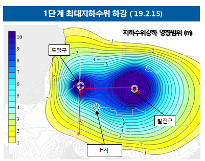이로써 공사 중 최대 지하수위 하강 시 수직구와 쉴드터널에서 유출된 지하수량은 1일 2,000톤 이상 발생한 것으로 추정됐다.